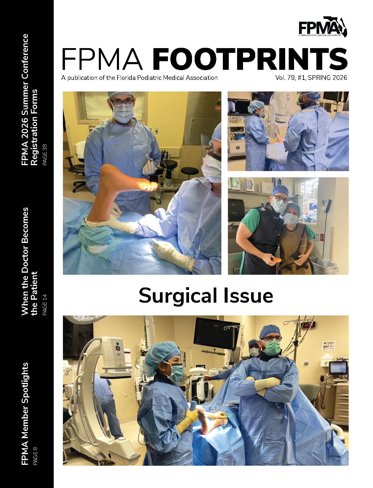 FPMA Footprints is a biannual publication that is sent to the 1,000+ members of FPMA. FPMA Footprints is the official publication of the Florida Podiatric Medical Association, which was founded in 1927.